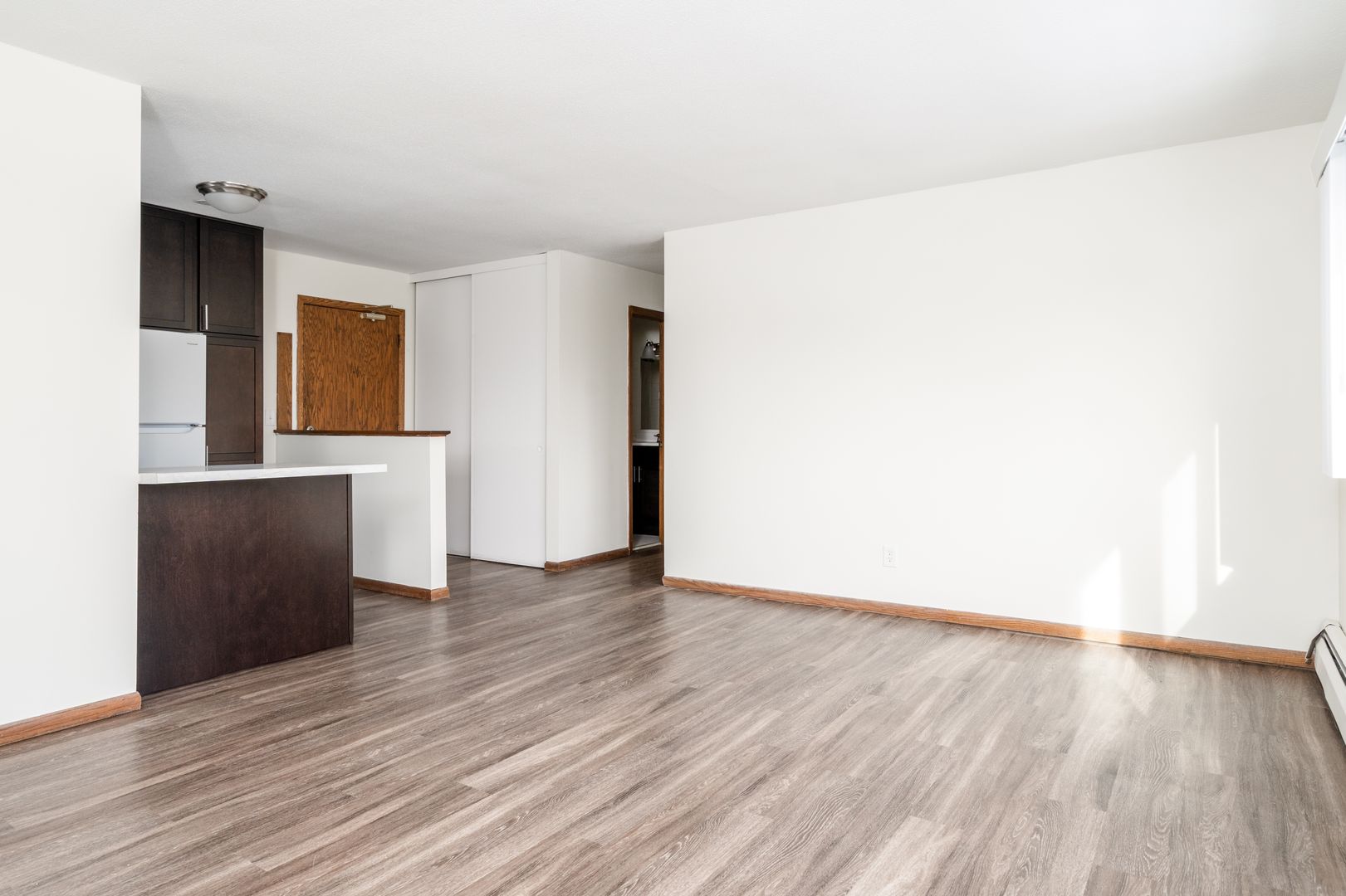 Freshly remodeled apartment with brand new kitchen, appliances, and flooring throughout!