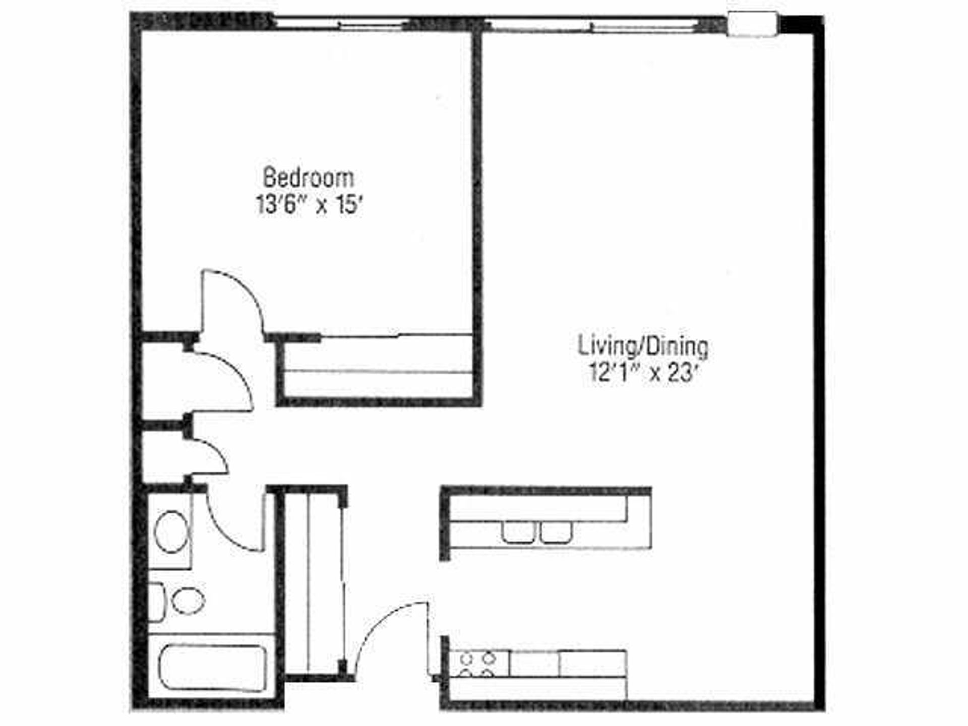 Standard 1BR (708 sq. ft) 3rd floor with balcony.