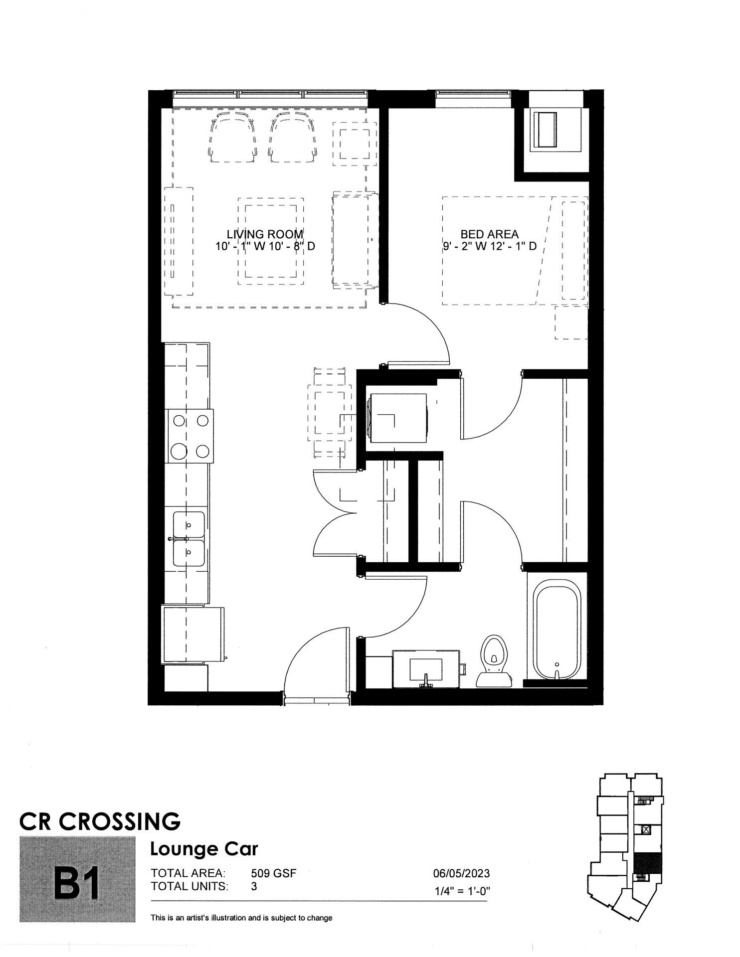 The Lounge Car - 3rd Floor - 1 Bedroom (509 sq. ft.)