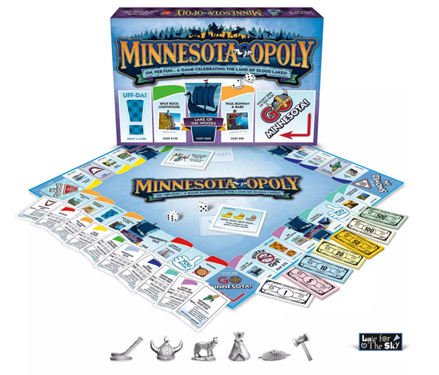 Your next game night just got a lot more fun! Take a look at the Minnesota spin on the classic board game. With playing pieces such as a Viking helmet, a hatchet, corn on the cob, and a hockey stick, the attention to detail is incredible! Instead of going to jail, in this version, you get snowed in! Play on to own Lake of the Woods or the Split Rock Lighthouse!